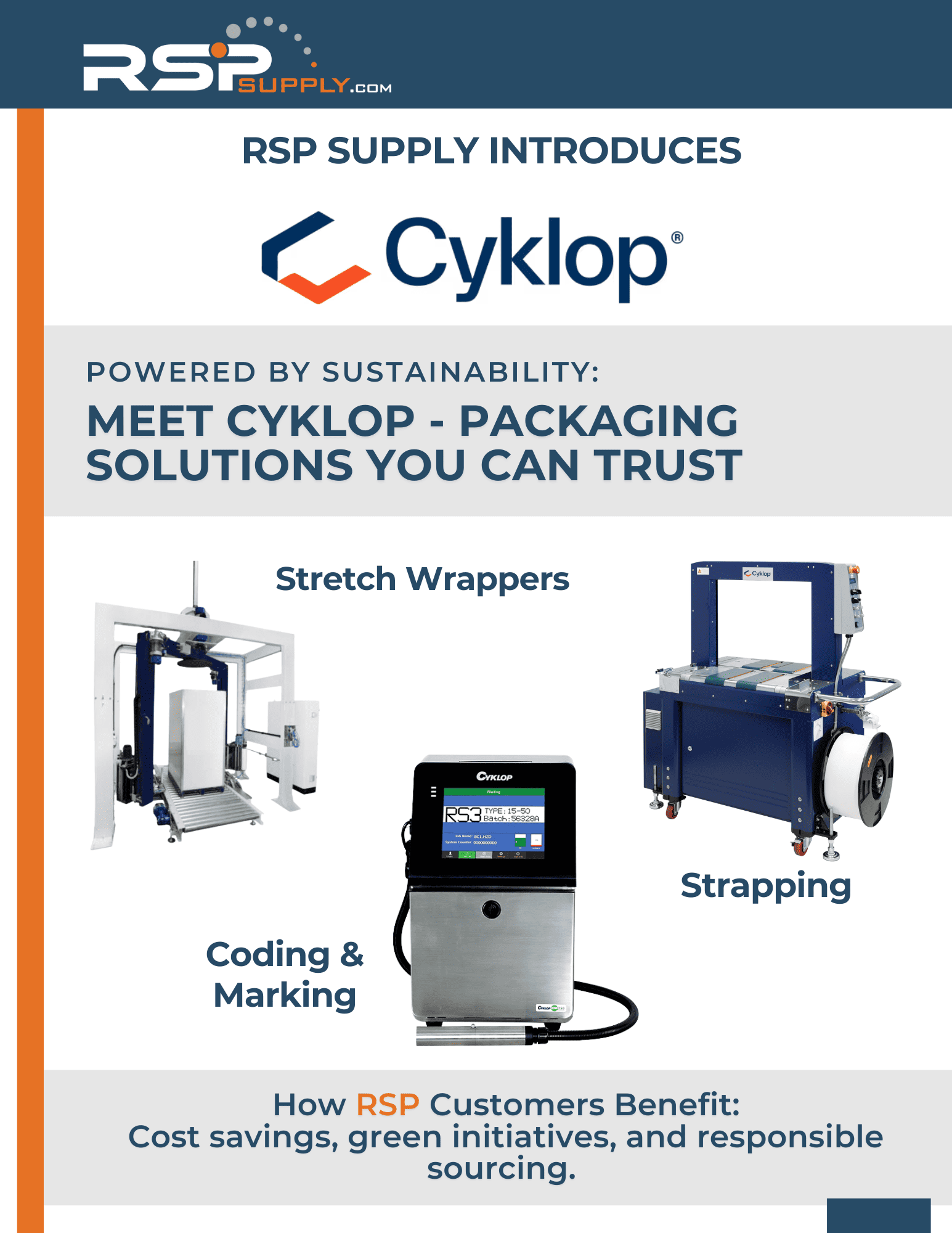 How RSP Customers Benefit: cost savings, green initiatives, and responsible sourcing. We’re excited to introduce Cyklop as RSP’s newest manufacturing partner. With more than 100 years of experience, Cyklop is a global leader in packaging solutions, offering everything from strapping and wrapping systems to advanced coding and marking technologies. Their commitment to innovation, reliability, and sustainability aligns closely with RSP’s mission to deliver high-quality, efficient solutions to our customers.