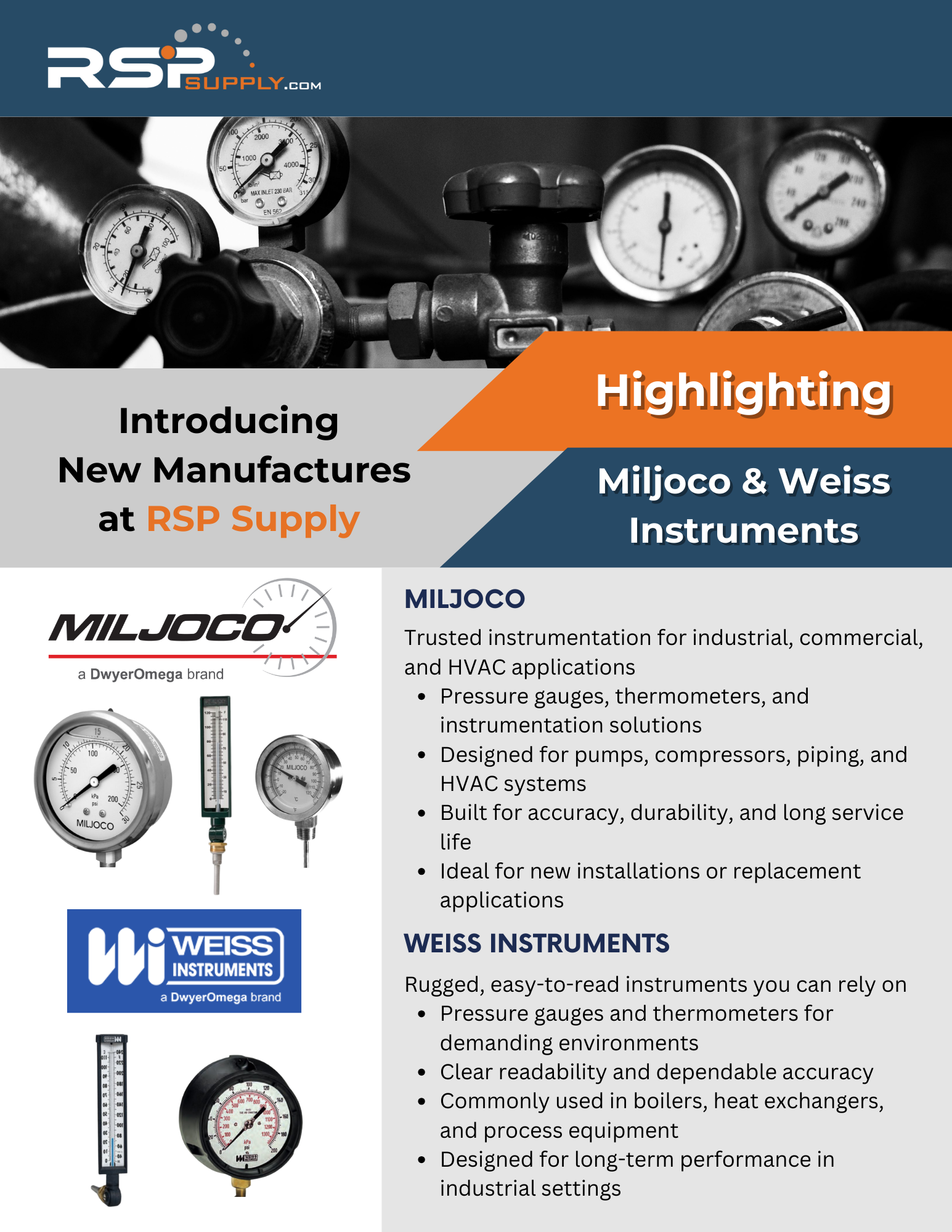 - Pressure gauges, thermometers, and instrumentation solutions.