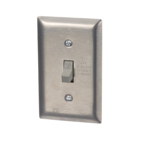 This NEMA 1 flush mounted unit with a stainless steel flush plate can be mounted in a standard switch box or in a machine cavity without a box