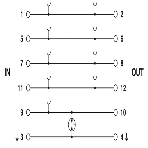 PT 4+F-BE Phoenix Contact Transient Surge Suppressor PT 4+F-BE Base element for protective plug PT with protective circuit for a 4-wire floating signal circuit, gas-filled surge arrester between the connections 3-4 (GND) and 9-10.