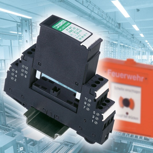 Phoenix Contact 2838351 A protective plug with a protective circuit designed for use with four-conductor signal circuits that are grounded on one side is rated for nominal AC voltage of 24 volts.