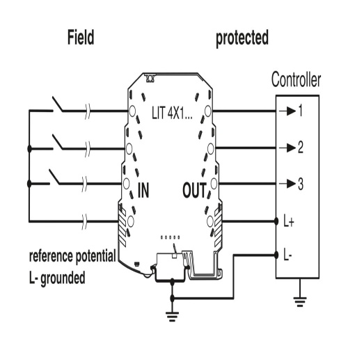 LIT 4X1-24 Phoenix Contact Transient Surge Suppressor LIT 4X1-24 Surge protection in one-piece 6.2 mm wide DIN rail module for four conductors with common reference potential.