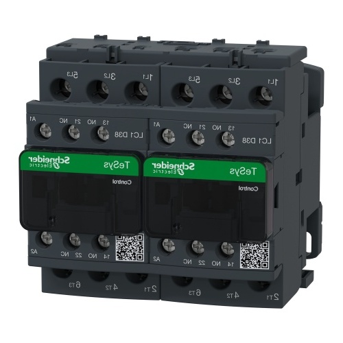 Schneider LC2D38B7 Reversing contactor Power circuit 690 V IEC 60947-4-1, Power circuit 600 V CSA, Power circuit 600 V UL, Signalling circuit 690 V IEC 60947-1, Signalling circuit 600 V CSA, Signalling circuit 600 V UL Control circuit screw clamp terminals 1 0.00-0.01 in² (1-4 mm