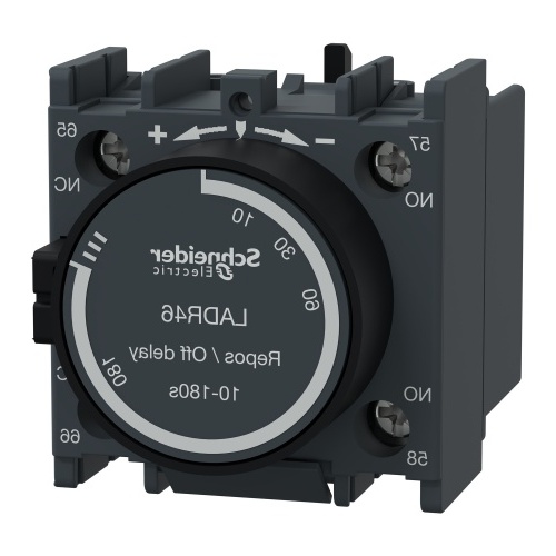 Buy Schneider LADR46 Time delay auxiliary contact block TeSys D control relay, TeSys D 23-140 °F (-5-60 °C 600 V UL, 690 V IEC 60947-5-1 lugs-ring terminals 1 NO + 1 NC Off delay 10 A 140 °F (60 °C 140 A AC, 250 A DC IEC 60947-5-1, BS 4794, EN 60947-5-1, VDE 0660, NF C 63-140 TeS
