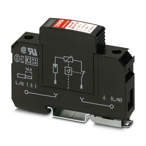 VAL-MS 350VF Phoenix Contact VAL-MS 350VF Surge voltage arrester consisting of base element with protective plug with a connection in series with a varistor and a gas-filled spark gap, for mounting on NS 35/7.5, nominal voltage: 230 V AC
