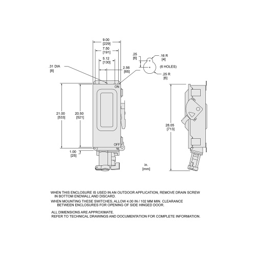 Schneider Electric HU363AWC Safety switch, heavy duty, non fusible, 100A, 600 VAC/VDC, 3 poles, 100 hp, NEMA 12K, crouse hinds arktite