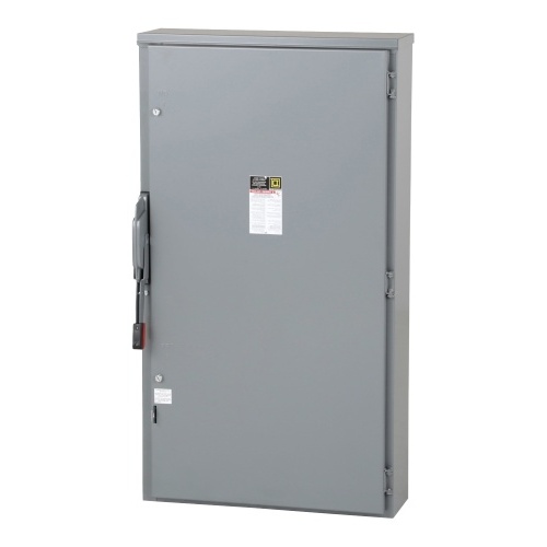Safety switch, heavy duty, fusible, 600A, 2 poles, 200 hp, 240 VAC/250 VDC, NEMA 3R, neutral factory installed