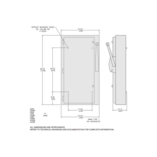 Schneider Electric H226 Safety switch, heavy duty, fusible, 600A, 2 poles, 200 hp, 240 VAC/250 VDC, NEMA 1