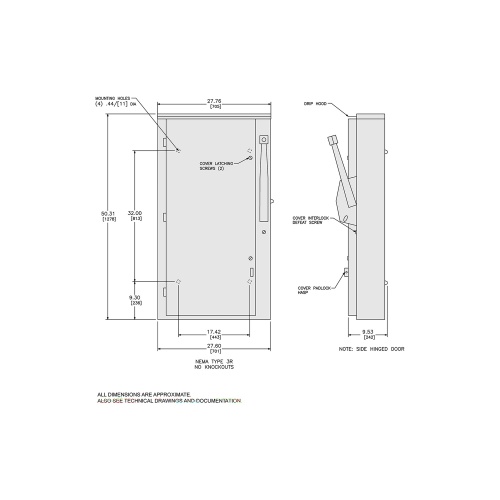 Safety switch, heavy duty, fusible, 400A, 2 poles, 250 hp, 600 VAC/DC, NEMA 3R