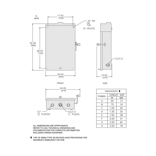 Schneider Electric 82344RB Safety switch, double throw, non fusible, 200A, 600V, 3 poles, 15 hp, NEMA 3R, bolt on provision