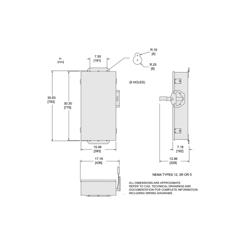 Schneider Electric DTU462AWK Safety switch, double throw, non fusible, 60A, 600 VAC/VDC, 4 poles, 60 hp, NEMA 12, no knock outs