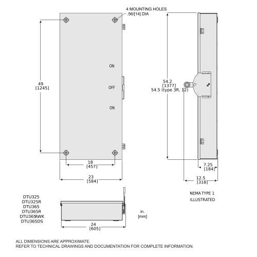 Schneider Electric DTU365R Safety switch, double throw, non fusible, 400A, 600 VAC/VDC, 3 poles, 350 hp, NEMA 3R