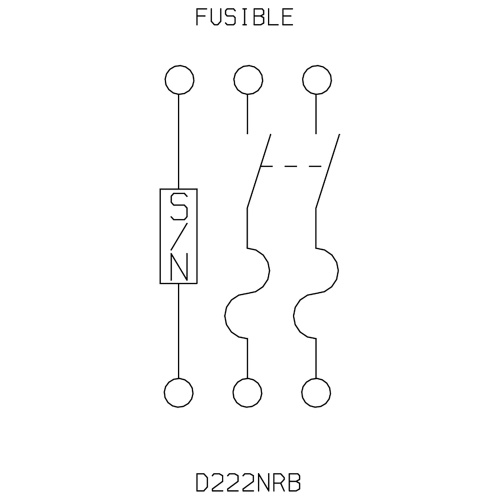 Schneider Electric D222NRB Safety switch, general duty, fusible, 60A, 2 poles, 15 hp, 120 VAC, NEMA 3R, bolt-on provision, neutral factory installed