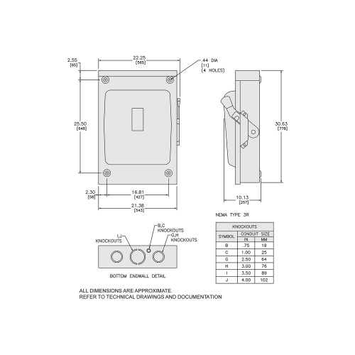 Schneider Electric D325NR Safety switch, general duty, fusible, 400A, 3 poles, 125 hp, 240 VAC, NEMA 3R, neutral factory installed