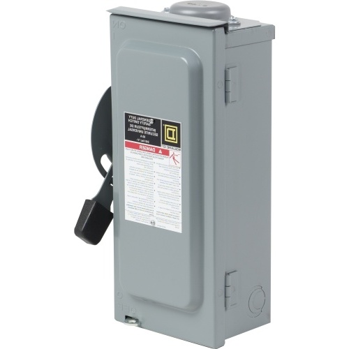 Schneider Electric CD222NRB Safety switch, general duty, fusible, 60A, 120/240 VAC, 2 poles, 15 hp, solid neutral, NEMA 3R with bolt on hub