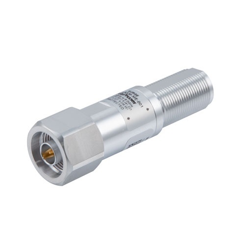This M/F type N to N type surge protecting component for RF has a let-through energy of .5uJ.