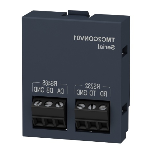 Schneider TMC2CONV01 Serial line cartridge Conveying applications Modicon M221C Non isolated serial link - screw terminal block RS232, Non isolated serial link - screw terminal block RS485 Non isolated serial link Modbus master/slave - RTU/ASCII or SoMachine-Network Modicon M221 Nano PLC Options Application cartridges