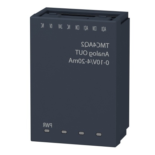 Schneider TMC4AQ2 Analogue output cartridge 2 16 bits Modicon M241C Current 4-20 mA, Voltage 0-10 V 1 x 1.5 mm² 1 spring terminal block pitch 3.81 mm for outputs and supply Modicon M241 Micro PLC Options Cartridges I/Os