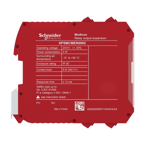 Schneider XPSMCMER0002 2 captive screw clamp terminals, removable terminal block, 1 captive screw clamp terminals, removable terminal block 2 relay Modular safety controllers Safe expansion modules Safe Relay output module