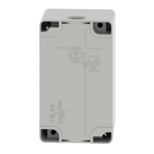 This gray empty control station enables machine builders to customize their machines by easily adding any control and signalling functionality units on the enclosure according to the operation required,It is designed for simple and mass production machines, textiles, packaging, handling small lifting systems, control of garage doors, rolling shutters, smoke extraction vents,It is impact resistant, dust resistant, water resistant and vibration resistant thanks to its IP65 / IP, making it ideal for operation in harsh environments,It is compatible with Harmony 22mm range pushbuttons, switches and pilot lights
