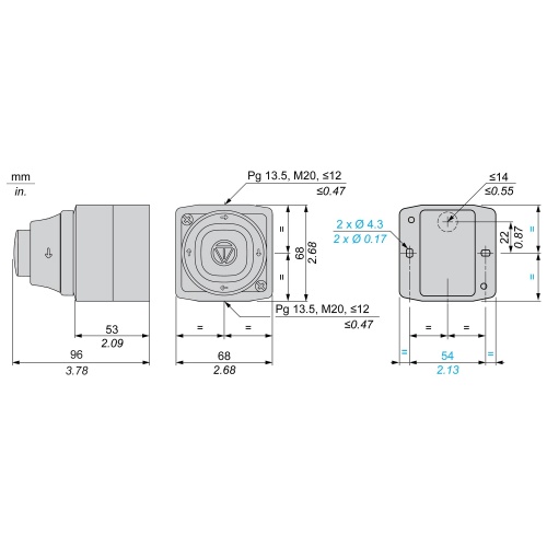 Full compatibility with the Ø 22 mm plastic push buttons, switches and pilot lights of the Harmony XB5 range
