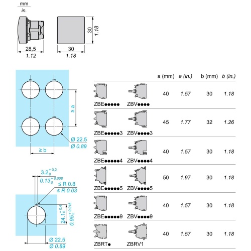 Schneider ZB5CV013 Head for pilot light Integral LED Square White With plain lens Dark gray plastic 0.87 in (22 mm 1 Harmony XB5 XALK 22 mm Plastic Control Stations Heads XB5 Pilot lights