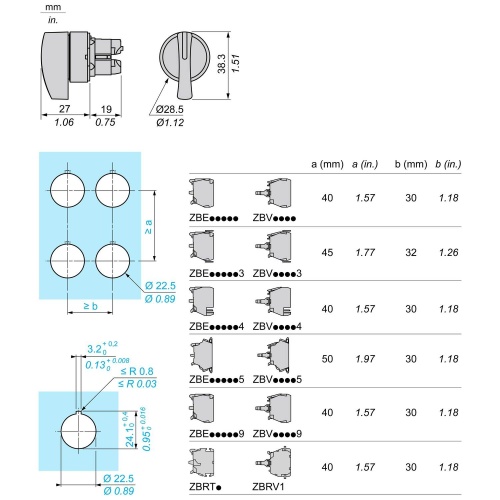 Schneider ZB5AJ2 Head for selector switch LROS (Lloyds register of shipping, GL, CSA, BV, RINA, DNV, UL Listed Round Non padlockable Dark gray plastic Black long handle 2 positions 90° 0.87 in (22 mm 1 Harmony XB5 stay put XALK 22 mm Plastic Control Stations Heads XB5 Selector s