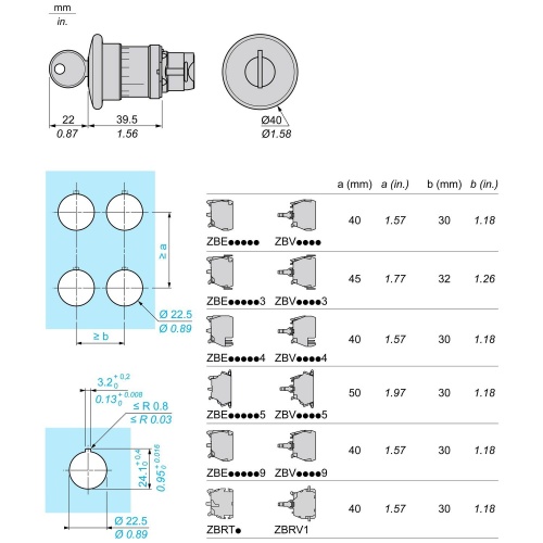 Schneider ZB5AS94414 Head Emergency stop push-button Key release CSA, BV, RINA, UL Listed, DNV, LROS (Lloyds register of shipping, GL Round Dark gray plastic Ronis 520E Center Red mushroom Ø 40 mm, unmarked 0.87 in (22 mm 1 Harmony XB5 trigger action and mechanical latching XALK