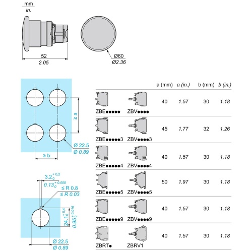 Schneider ZB5AR4 Head for non-illuminated push-button DNV, GL, UL Listed, LROS (Lloyds register of shipping, BV, CSA, RINA Round Dark gray plastic Harmony XB5 XALK 22 mm Plastic Control Stations Heads XB5 Mushrooms