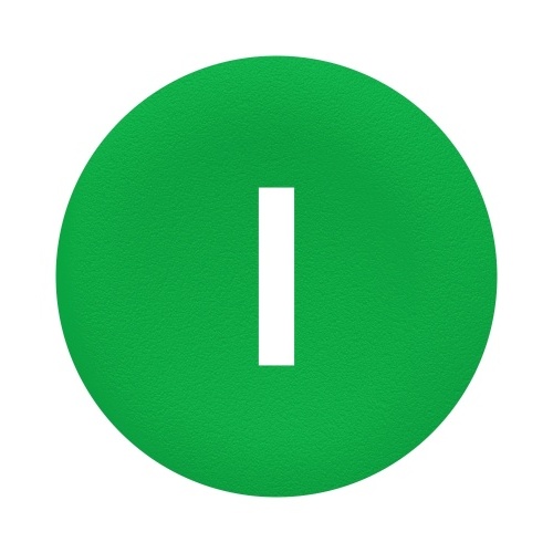 This Harmony ZB, green marked push button cap has a round shape with \I\ symbol