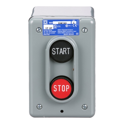 Schneider Electric 9001BW240 Push Button Complete Control Station, 2 momentary push buttons, START STOP, 600 VAC, 5 A, NEMA 4, 2 push-buttons START-STOP