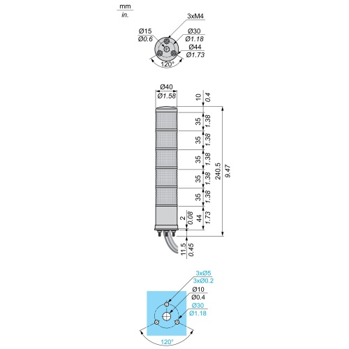 Schneider XVC4B5K 5 illuminated units Without 24 V 1.57 in (40 mm Complete pre-wired monolithic tower light LED steady red, LED steady orange, LED steady green, LED steady blue, LED steady clear IP54 flat surface installation EN/IEC 60529 Harmony XVC1 100 mm Tower Lights Pre-wire