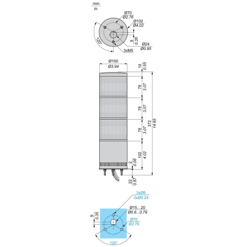 Schneider XVC1B3K 3 illuminated units Without 24 V 3.94 in (100 mm Complete pre-wired monolithic tower light LED steady or flashing red, LED steady or flashing orange, LED steady or flashing green IP54 EN/IEC 60529 Harmony XVC1 100 mm Tower Lights Pre-wired monolithic tower light