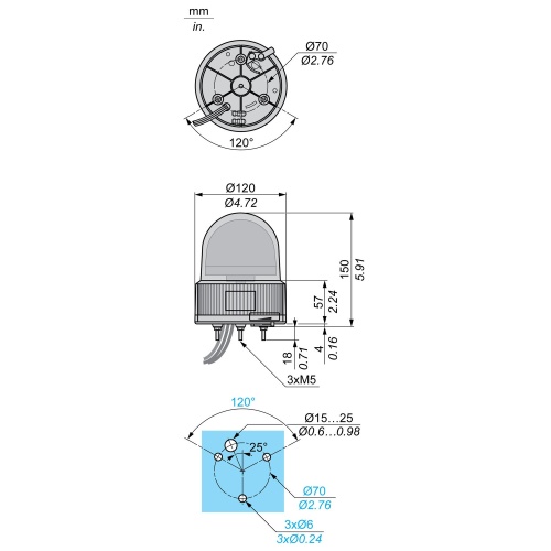 Schneider XVR12B05S Buzzer 24 V AC/DC 4.72 in (120 mm 50-90 dB continuous or intermittent tone1 m Prewired rotating mirror beacon High luminosity LED, orange IP23 IEC 60529 4.72 in (120 mm 4.72 in (120 mm Lights/Beacons/Signaling Solutions Harmony XVR Rotating Beacon Lights Pre-w