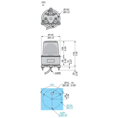 Schneider XVR13B04L Without 24 V AC/DC 5.12 in (130 mm Prewired rotating mirror beacon High luminosity LED, red IP66 IEC 60529, IP67 IEC 60529 5.12 in (130 mm 5.12 in (130 mm Lights/Beacons/Signaling Solutions Harmony XVR Rotating Beacon Lights Pre-wired rotating beacons