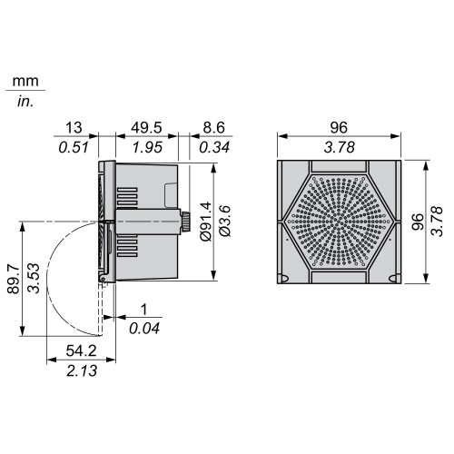 Schneider Electric XVS96BMWN Electronic alarm, white, NPN, mounting support DIN 96, 0…96 dB, 16 tones, 4 channels, 12…24 V AC DC