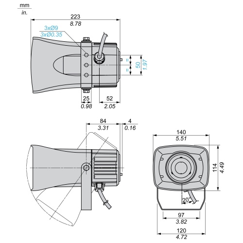 Schneider XVS14GMW 120 V AC White Bracket 43 tones siren 0-105 dB continuous or intermittent tone1 m Multisound siren IP53 EN/IEC 60529 Harmony XVS Sirens and Electronic Alarms Sound solution Multi-sound siren