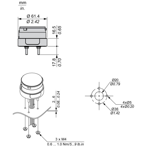 Schneider XVUZ04 24 V AC/DC, 110-240 V AC Mounting plate 2.36 in (60 mm Direct mounting 4 Black Modular tower light IP65 Lights/Beacons/Signaling Solutions Harmony XVU 60 mm Tower Lights Fixing units