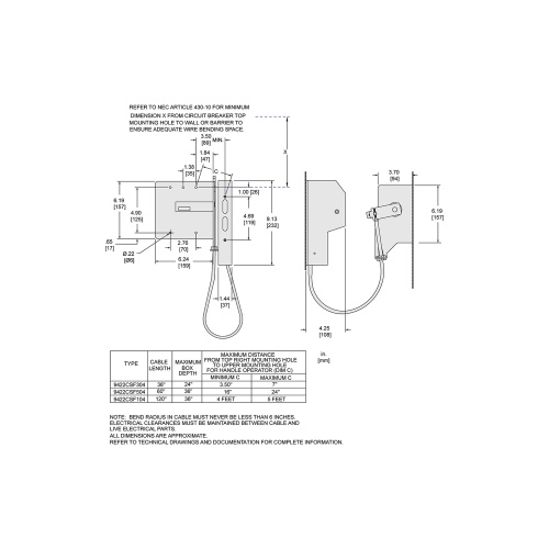 Schneider Electric 9422CSF304 Disconnect Mechanism, circuit breaker, cable operated, 250A, 4 poles, MG-NSF circuit breaker, 36 inch cable