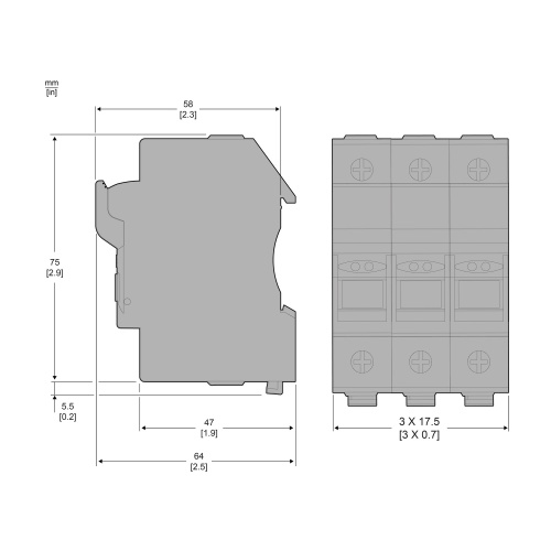 Schneider DF103 3P 32 A 10 x 38 mm IEC, UL Recognized, CSA, CCC, EAC, DNV-GL Fuse carrier 690 V AC, 690 V DC IP20 DF2CA fuse cartridge, DF2CN fuse cartridge EN/IEC 60947-3, EN/IEC 60269-2, UL 4248-1, CSA C22.2 No 4248-1, EN 45545-2 R22 HL2 , gG, , aM DF10 Disconnect Switches TeSy (MUST BUY IN PACKS OF 4)