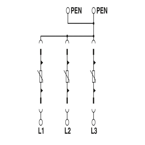 VAL-MS 750/30/3+0 Phoenix Contact VAL-MS 750/30/3+0 Surge arrester for 4-conductor power supply systems (L1, L2, L3, PEN), consisting of a base element and protective connectors, for mounting on DIN rail.