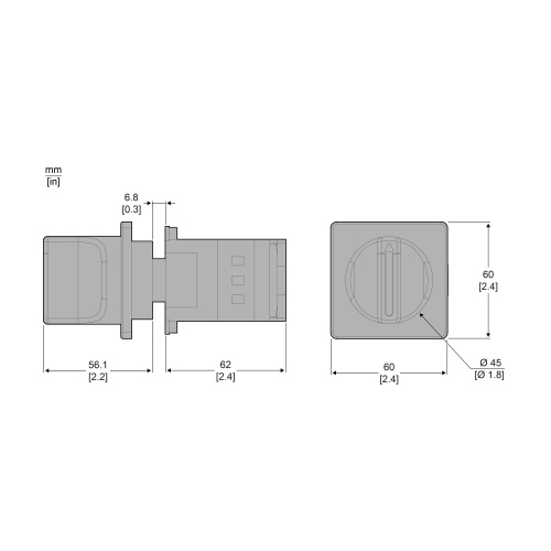 Composed with a switch body VZ20 and a black & grey operator, for main switching, padlockable