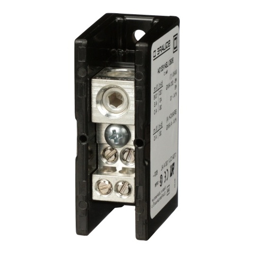 Schneider 9080LBA162104 2.88 in (73.15 mm Power Distribution Block 1 175 A copper, 135 A aluminium 1 line, 4 load 600 V AC/DC Circuit Protectors/Fuseholders/Terminal Blocks Square D 9080 Power Distribution Blocks 9080LB Power Distribution Blocks