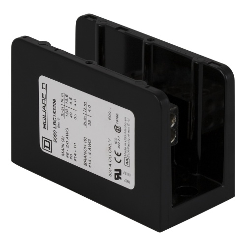 Schneider 9080LBC163206 4 in (101.60 mm Power Distribution Block 1 350 A copper 2 load, 6 line 600 V AC/DC Circuit Protectors/Fuseholders/Terminal Blocks Square D 9080 Power Distribution Blocks 9080LB Power Distribution Blocks