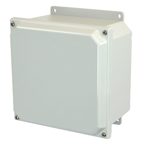 Allied Moulded AMP884F POLYLINE AMP Series JIC Size Polycarbonate 8" x 8" x 4" (HxWxD) Approx. Inside Dimensions Lift-Off Screw Cover.