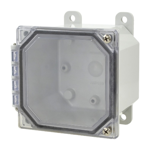 Allied Moulded AMP443H POLYLINE AMP Series JIC Size Polycarbonate 4" x 4" x 3" (HxWxD) Approx. Inside Dimensions Hinged Screw Cover.
