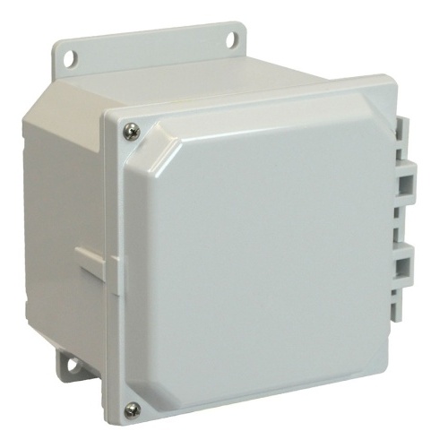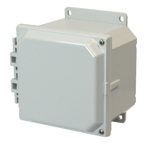 Allied Moulded AMP664HF POLYLINE AMP Series JIC Size Polycarbonate 6" x 6" x 4" (HxWxD) Approx. Inside Dimensions Hinged Screw Cover.