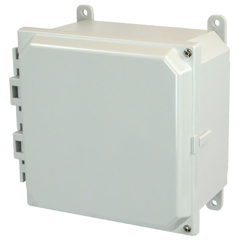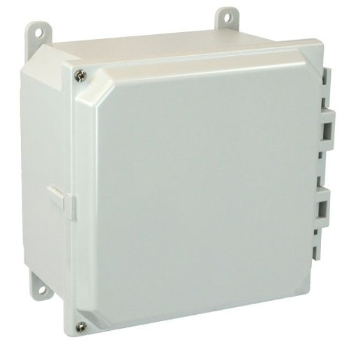 Allied Moulded AMP884H POLYLINE AMP Series JIC Size Polycarbonate 8" x 8" x 4" (HxWxD) Approx. Inside Dimensions Hinged Screw Cover.