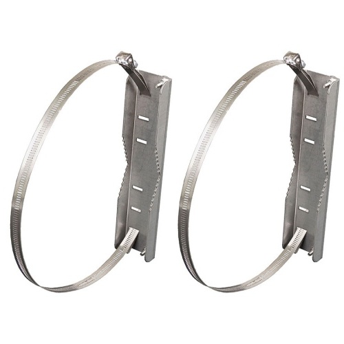 Mounting clamp adjusts to many pole shapes and sizes up through 15″ diameter