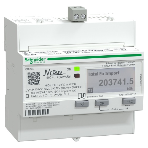 Schneider Electric A9MEM3135 iEM3135 energy meter - 63 A - M-bus - 1 digital I - 1 digital O - multi-tariff - MID